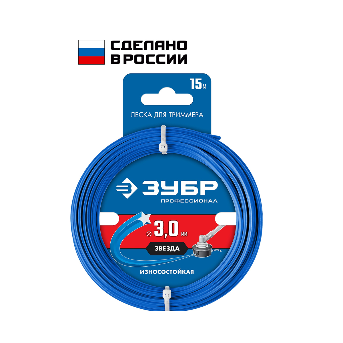 Леска для триммера ЗВЕЗДА, 3мм., 15м., ЗУБР ПРОФЕССИОНАЛ (71020-3.0)