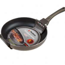 Стальная эмалированная крышка с бакелитовой ручкой-кнопкой, нержавеющей окантовкой.