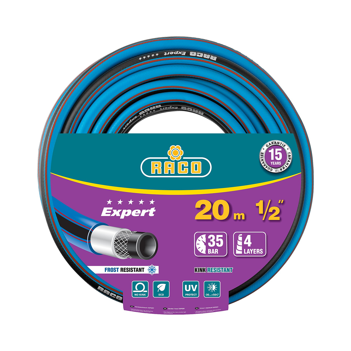 Шланг поливочный RACO EXPERT, 1/2", 20 метров, 35 атм, четырехслойный армированный