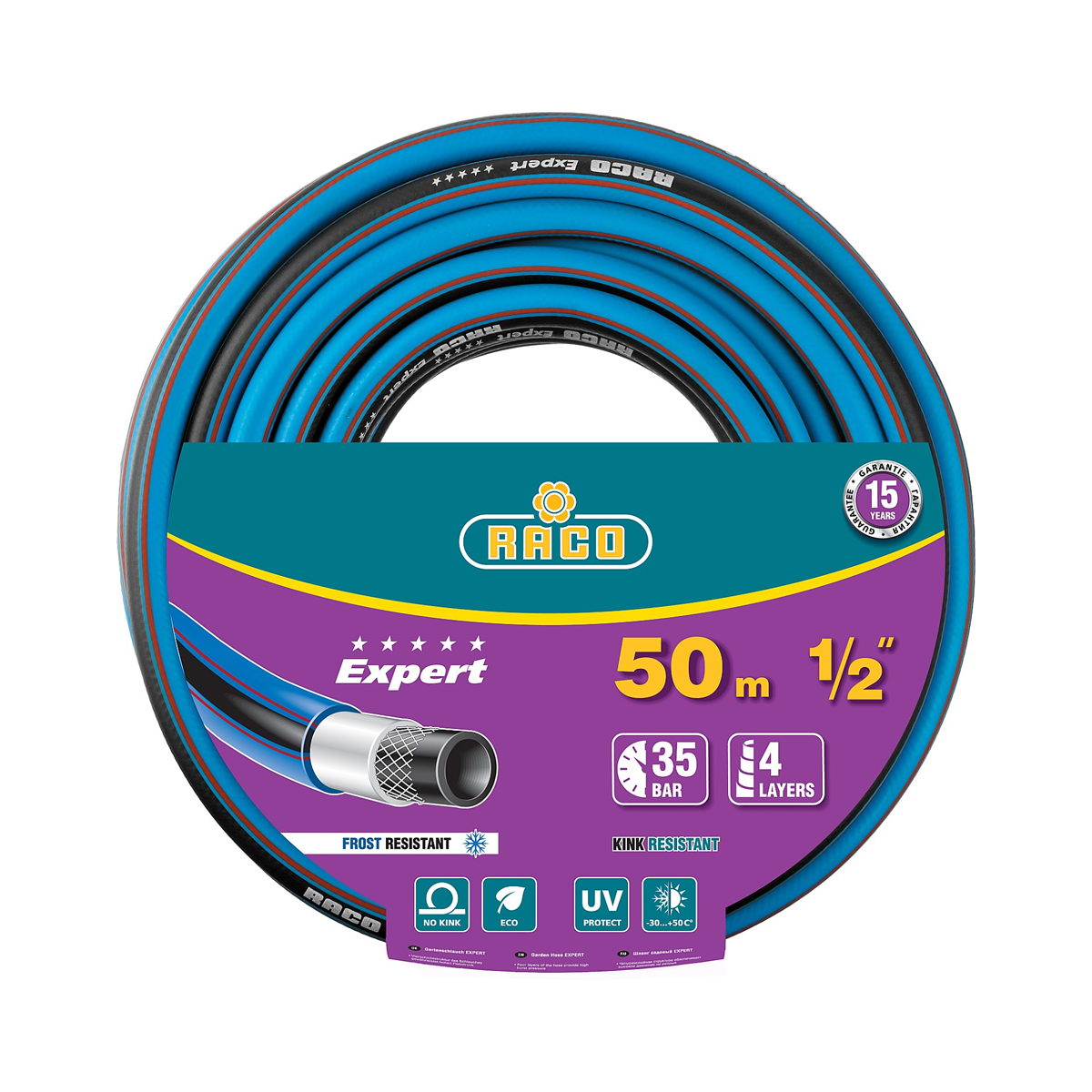 Шланг поливочный RACO EXPERT, 1/2", 50 метров, 35 атм, четырехслойный армированный