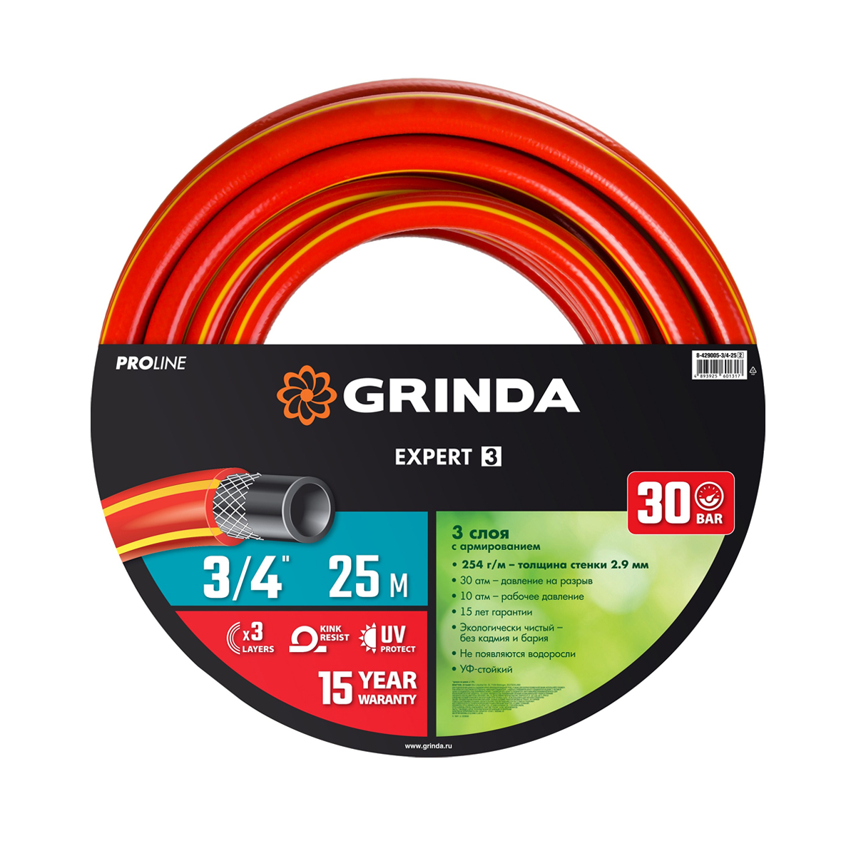 Шланг поливочный EXPERT 3, 3/4", 25 метров, 30 атм, трехслойный армированный, GRINDA