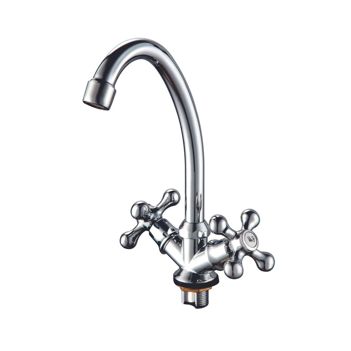 Корпус смесителя состоит из сплава с высоким содержанием меди, что способствует долговечности покрытия. Количество монтажных отверстий - одно. Имеется аэратор. Крепление происходит на гайке. Оснащён металлическими маховиками.