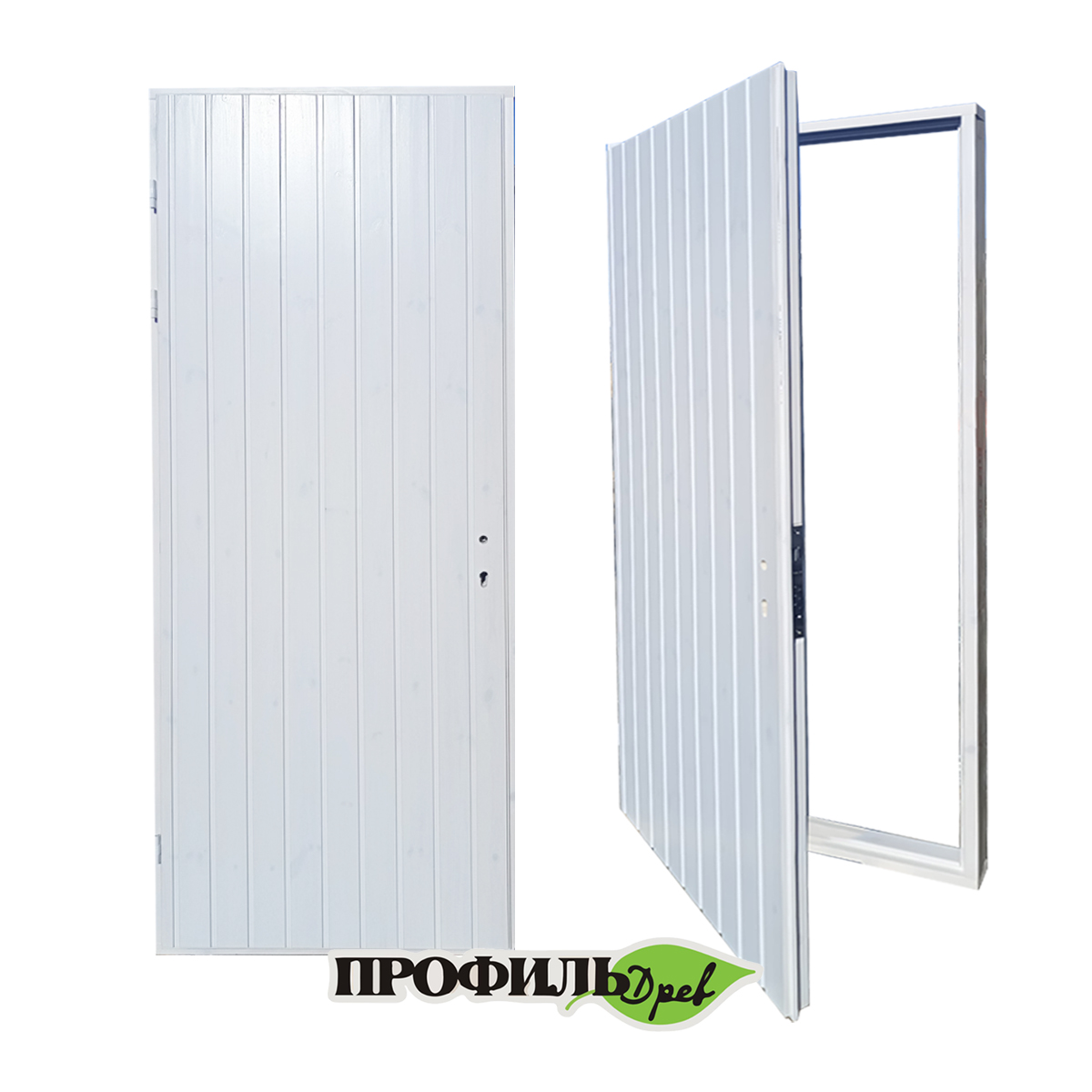 Дверной блок утепленный 2070х870мм (ЕВРОВАГОНКА, лак БЕЛЫЙ, ЛЕВАЯ, замок, утеплитель, уплотнитель, петли, наплав)