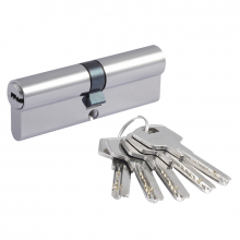 Латунный цилиндр для межкомнатных и входных дверей. 6 пинов, в комплекте 5 перфорированных ключей из латуни. Цилиндр имеет штифт из закаленной стали против высверливания и вертушку для удобного запирания изнутри помещения без использования ключа. Ресурс работы более 100.000 циклов. Длину цилиндра подбирайте исходя из толщины двери, с небольшим запасом под накладку. Гарантия на работу цилиндра 5 лет